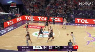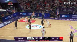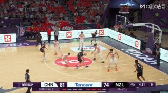 新西兰这个时候已经慌了,这个二次篮板下来中国队站的非常乱,但新西兰……不会攻了, 瞎投完事