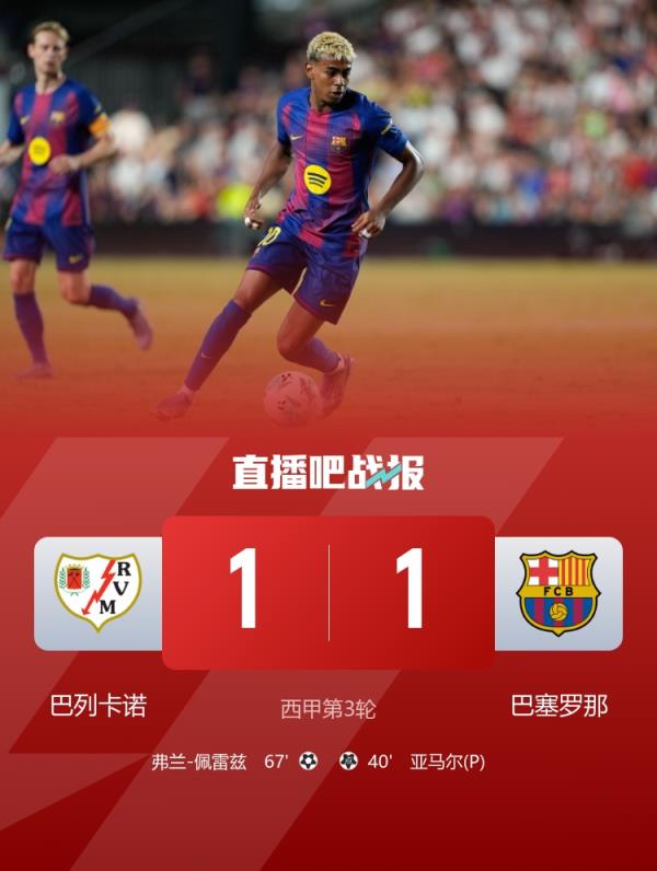 亚马尔造点+点射,奥尔莫失良机,加西亚屡神扑,巴列卡诺球员多次浪费机会!
