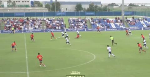 09月07日讯 昨日一场U19比赛,英格兰U19以3-3战平了西班牙U19。阿森纳15岁小将道曼本场比赛身披7号球衣首发出战,第69分钟被恩古莫哈换下。talksport报道,本场比赛上半场,道曼便遭遇西班牙球员10次犯规。道曼现年15岁,司职中场,本赛季已经代表阿森纳英超出场2次。部分道曼被放倒瞬间:道曼造点↓