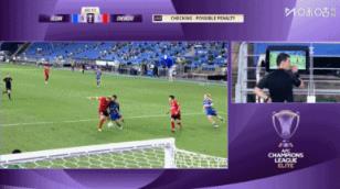 09月17日讯 亚冠精英联赛东亚区第1轮,成都蓉城客场对阵蔚山HD,比赛第48分钟,蓉城禁区内皮球先打到莱切特身体随后击中他的手臂,VAR介入检查,随后主裁判来到场边回看,最终维持了没有点球的判罚。