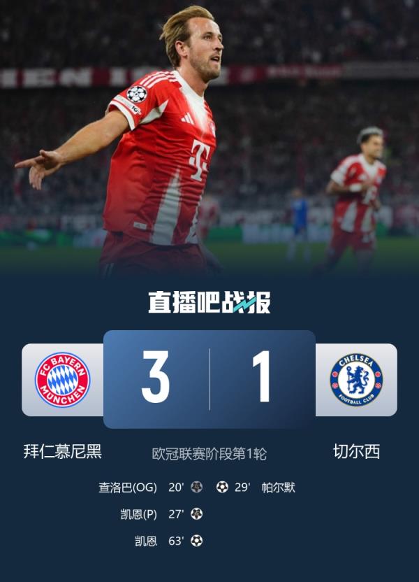 开门红!拜仁3-1切尔西 凯恩双响查洛巴乌龙帕尔默破门古斯托送礼