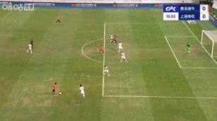 第10分钟,青岛海牛前场策动进攻,金永浩推进后与队友配合,随后在禁区内横传门前,兰克尔-泽头球攻门,这球在门线上被薛庆浩扑出,随后兰克尔-泽补射再被封堵。↓