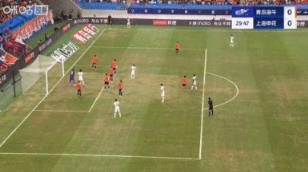 第29分钟,上海申花右侧角球机会,球罚向前点,安德烈-路易斯近距离头球攻门,被对方门将扑出。↓