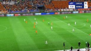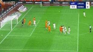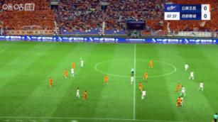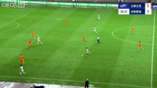 第36分钟,罗竞背身挑球倒钩射门,刘殿座将球摘下。↓