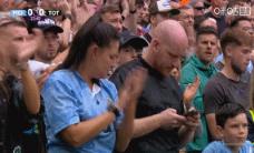 第35分钟,理查利森右路接球杀到禁区边,横传禁区内,布伦南-约翰逊包抄破门!边裁示意越位,但VAR改判进球有效!热刺1-0领先曼城↓
