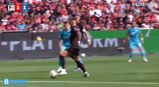第24分钟,霍村扳平比分!图雷左路禁区斜塞阿斯拉尼转身小角度抽射破门,勒沃库森1-1霍芬海姆。↓