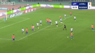 08月24日讯 中超第22轮,山东泰山vs青岛西海岸,比赛第66分钟,克雷桑送直塞,瓦科禁区内突破后推射中柱。