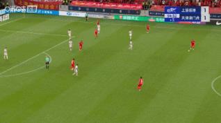 比赛伤停补时最后阶段,蒯纪闻得球突入禁区,一脚劲射打中立柱,主裁随即吹响了比赛结束的哨音,上海海港1-1战平天津津门虎。