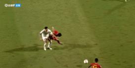 比赛第84分钟,双方爆发冲突,宋志伟因暴力动作被直红罚下!↓