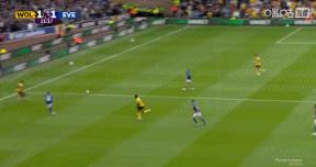 第20分钟,狼队扳平比分!穆内西右路下底传到禁区点球点附近黄喜灿抽射破门,狼队1-1埃弗顿。↓
