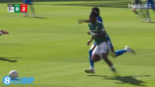 上半场补时第5分钟,格里马尔多的任意球打在人墙上飞出底线。↓