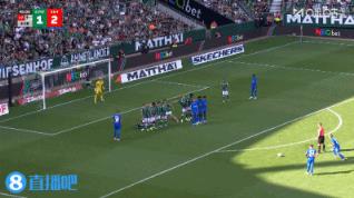 第41分钟,姆班古拉在对方禁区内倒地,主裁经VAR介入后给了点球!施密德主罚骗过弗莱肯稳稳命中!1-2!不莱梅追回一球!↓