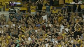 第18分钟,狼队现场球迷集体起立响起掌声,已故葡萄牙球星若塔曾在狼队效力,有球迷举起若塔在狼队时期的18号球衣。↓