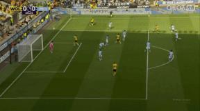 第26分钟,狼队前场右路高空球斜传到禁区内,穆涅西前插头球攻门顶进,边裁举旗示意越位在先,慢镜头显示,穆涅西明显处于越位位置!↓